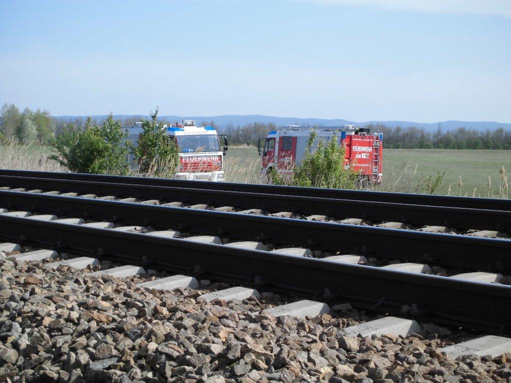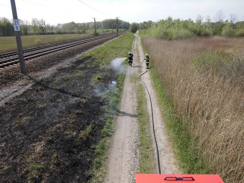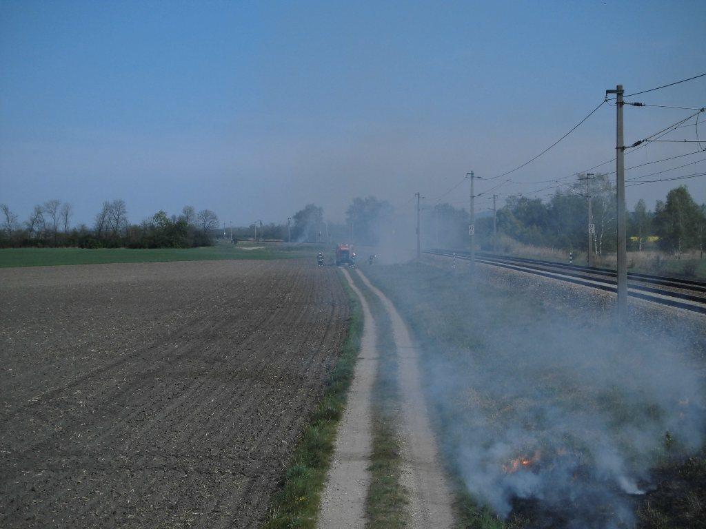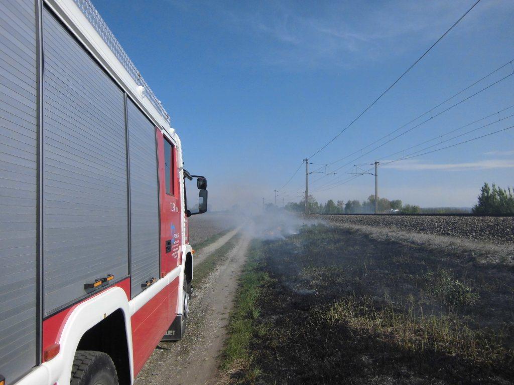 Im Bereich des Gemeindegebietes Götzendorf/Leitha stand der Bahndamm der Ostbahn an mehreren Stellen in Brand.