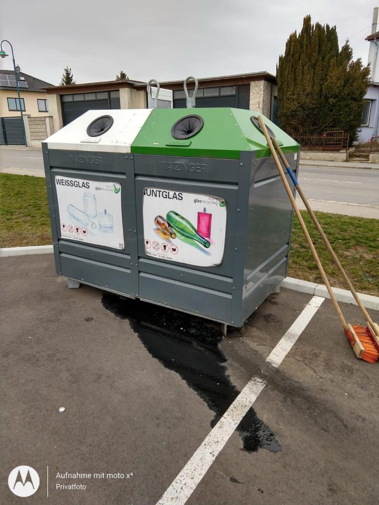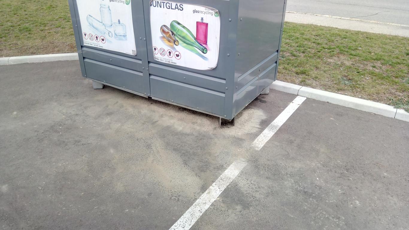 Aus dem Glascontainer am Penny-Parkplatz floss Speiseöl, welches fälschlicherweise dort entsorgt wurde.