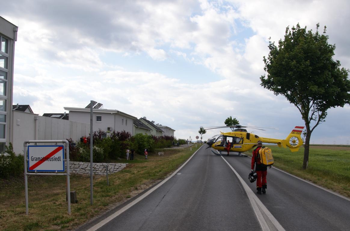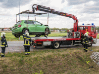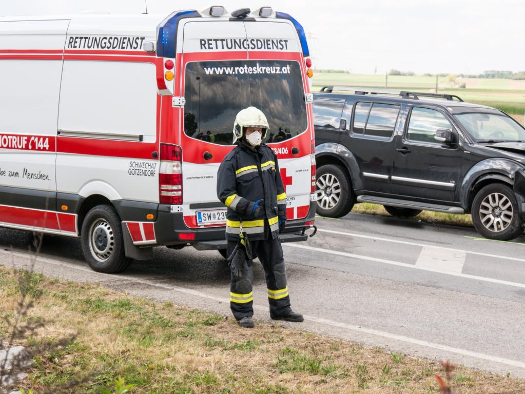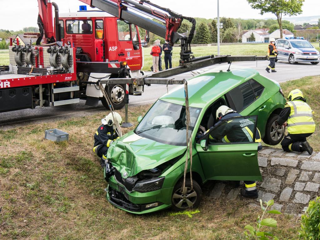 Nachdem die Verletzen versorgt waren und die Exekutive die Unfallaufnahme abgeschlossen hatte konnte ein Fahrzeug mit Muskelkraft vom Unfallort entfernt werden. Das zweite Fahrzeug, welches durch den Zusammenstoß in seine ungewöhnliche Stellung gebracht wurde war offensichtlich fahruntauglich. Um es dennoch möglichst schonend zu bergen wurde das Abschleppfahrzeug der FF Schwechat angefordert. Dieses hatte mit seinem Kran mit dem Kleinwagen leichtes Spiel. Nachdem auch alle Teile der Unfallfahrzeuge eingesammelt waren und die ausgetretenen Betriebsmittel gebunden konnte die Landesstraße von der Polizei wieder für den Verkehr freigegeben werden.