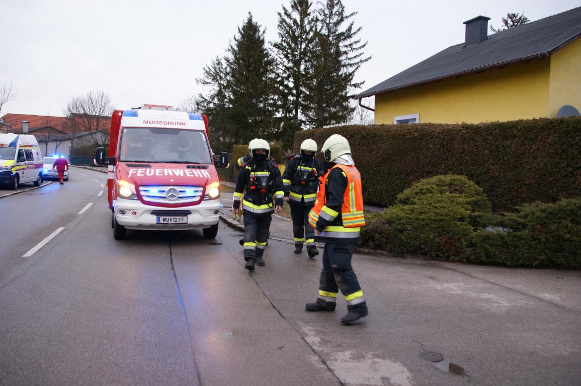 Bei unserem Eintreffen war die FF Moosbrunn bereits mit der Brandbekämpfung beschäftigt. In einer an ein Wohngebäude angrenzenden Garage war ein einspuriges KFZ in Brand geraten. Wir unterstützten die FF Moosbrunn mit einem Atemschutz-Trupp. |
