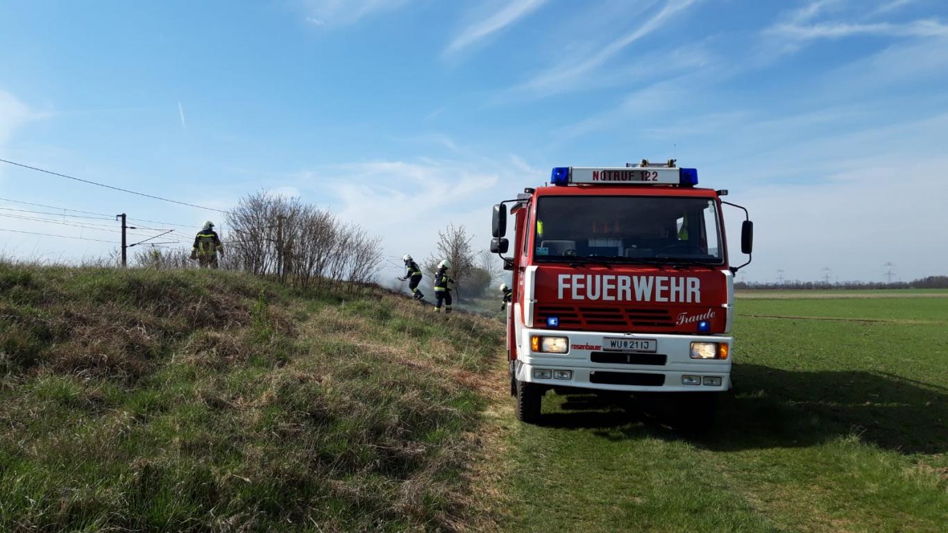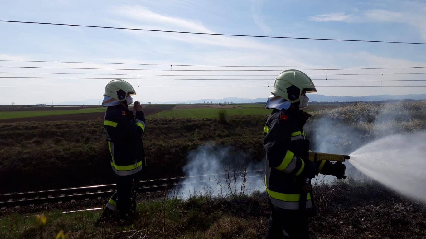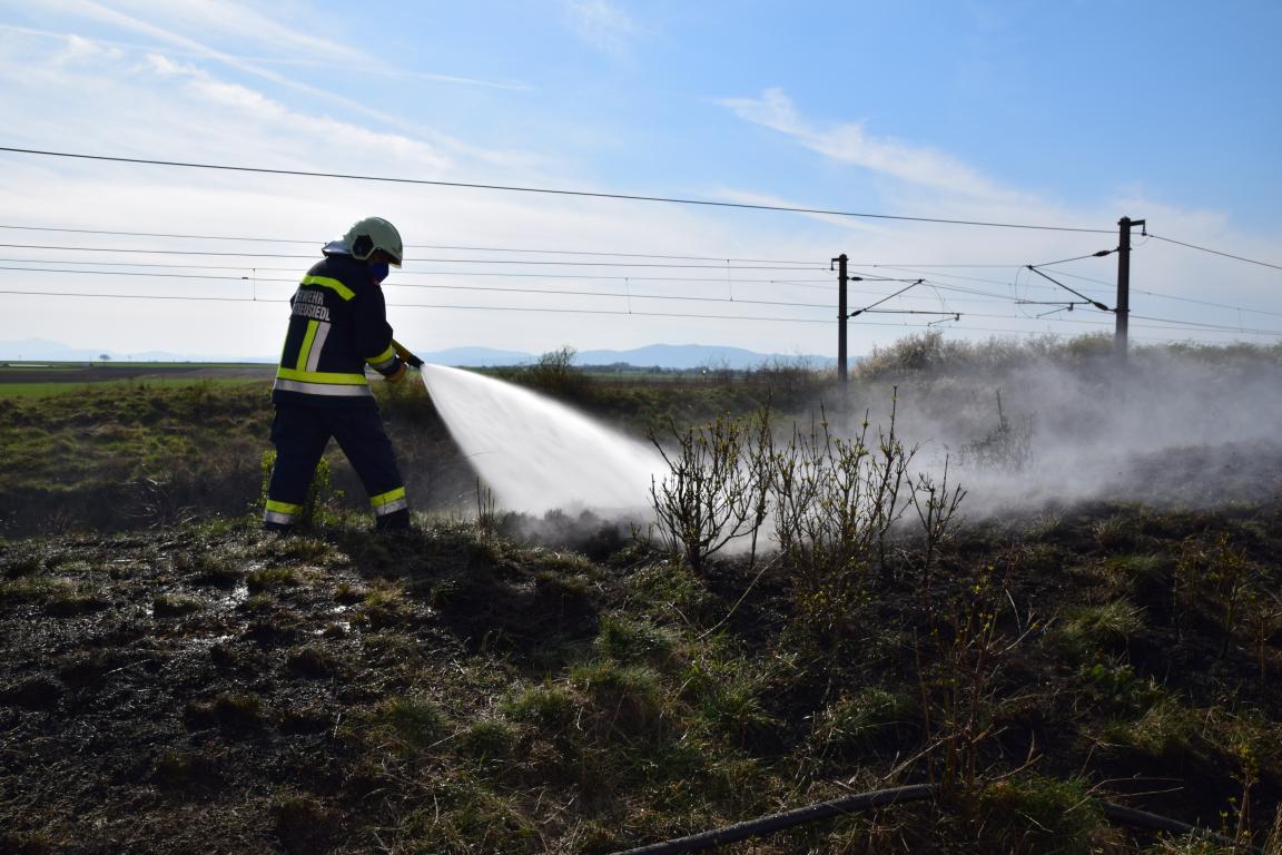 Zu einem Brand eines so ausgetrockneten Bahndamms wurden wir heute Nachmittag alarmiert. Kurz nach der Alarmierung rückten unser TLFA4000 und unser TLFA2000 aus. Mittels zwei HD-Rohren und Feuerpatschen wurde die Brand niedergeschlagen. Anschließend wurden noch zahllose Glutnester abgelöscht und das Dickicht ordentlich eingewässert um ein Wiederanbrennen zu verhindern.