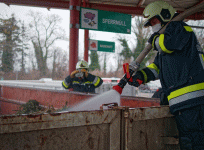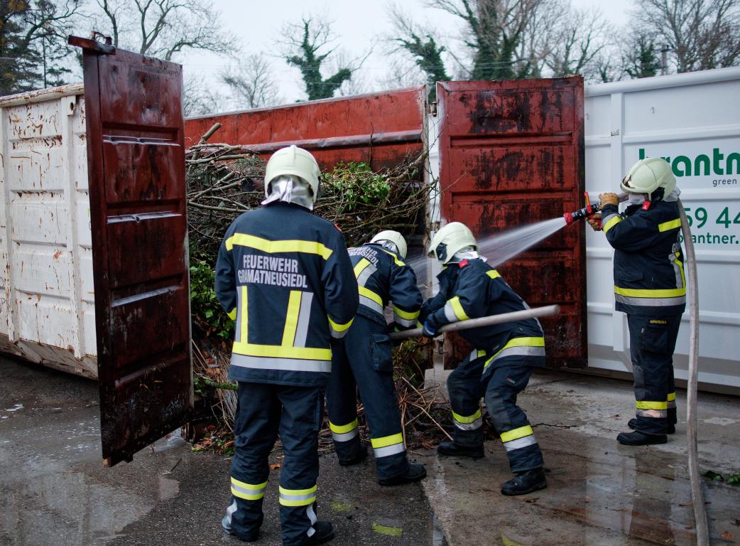 Am Einsatzort wurde die Brandbekämpfung mittels HD-Rohr und C-Rohr durchgeführt. Durch beigemischtes Netzmittel konnte das Löschwasser auch in das zusammengedrückte Brandgut eindringen. Anschließend wurde der Brandherd mittels Wärmebildkamera kontrolliert. |