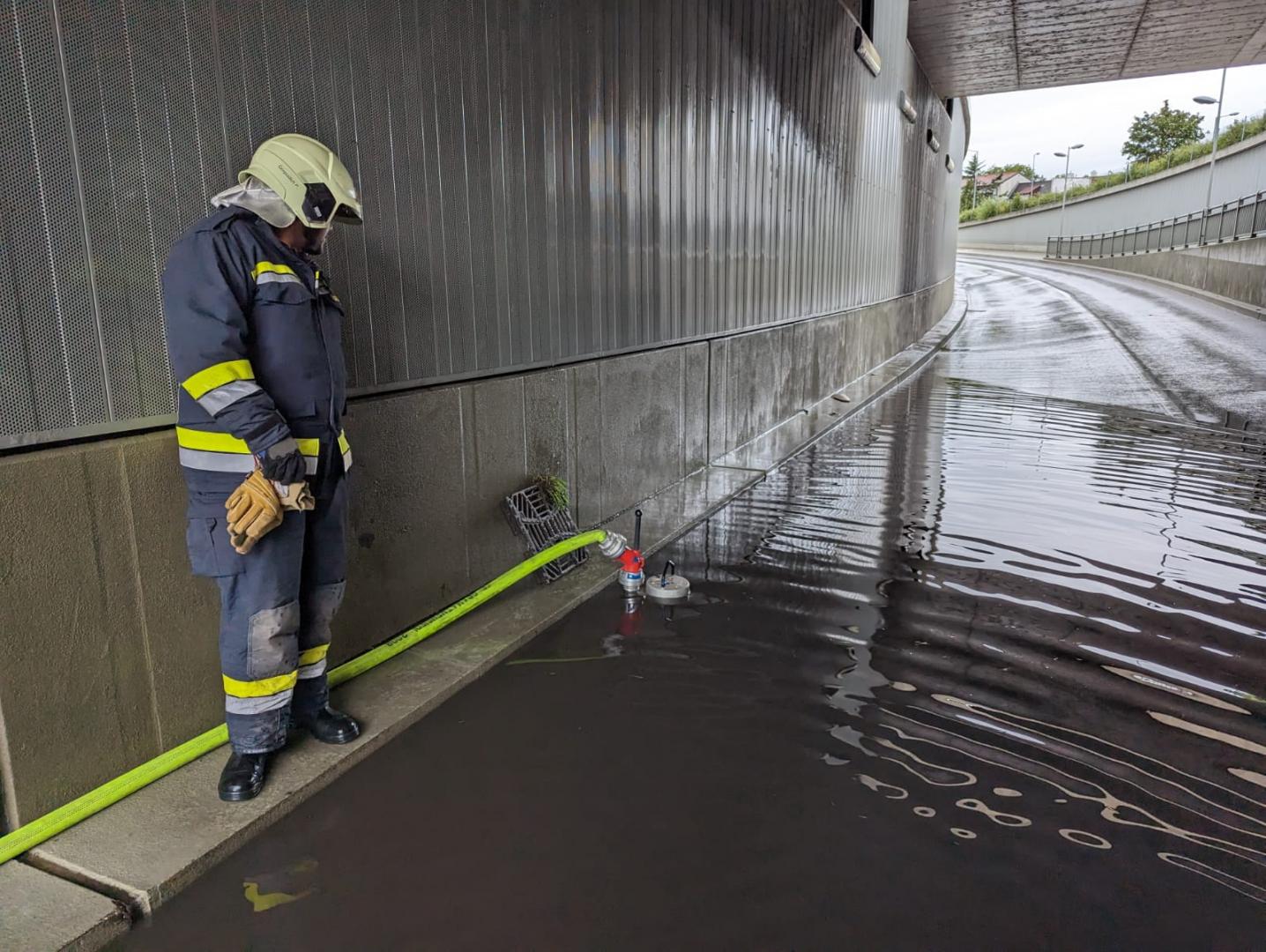 Während des Gewitters kam es zu einem großflächigen Stromausfall in Gramatneusiedl und Umgebung. Während des Stromausfalls wurden wir zu Auspumparbeiten in die Bahnstraße zur Bahnunterführung alarmiert. Während bei unserem Eintreffen der Regen bereits merklich nachgelassen hatte, waren die Hochleistungspumpen, welche normalerweise die Fahrbahn in der Unterführung auch bei sehr heftigem Regen freihalten ausgefallen. Mittels Tauchpumpen wurde die Fahrbahn durch uns vom stehenden Wasser befreit. Und pünklich zum Ende Arbeiten kam auch der Stromausfall zu einem Ende.