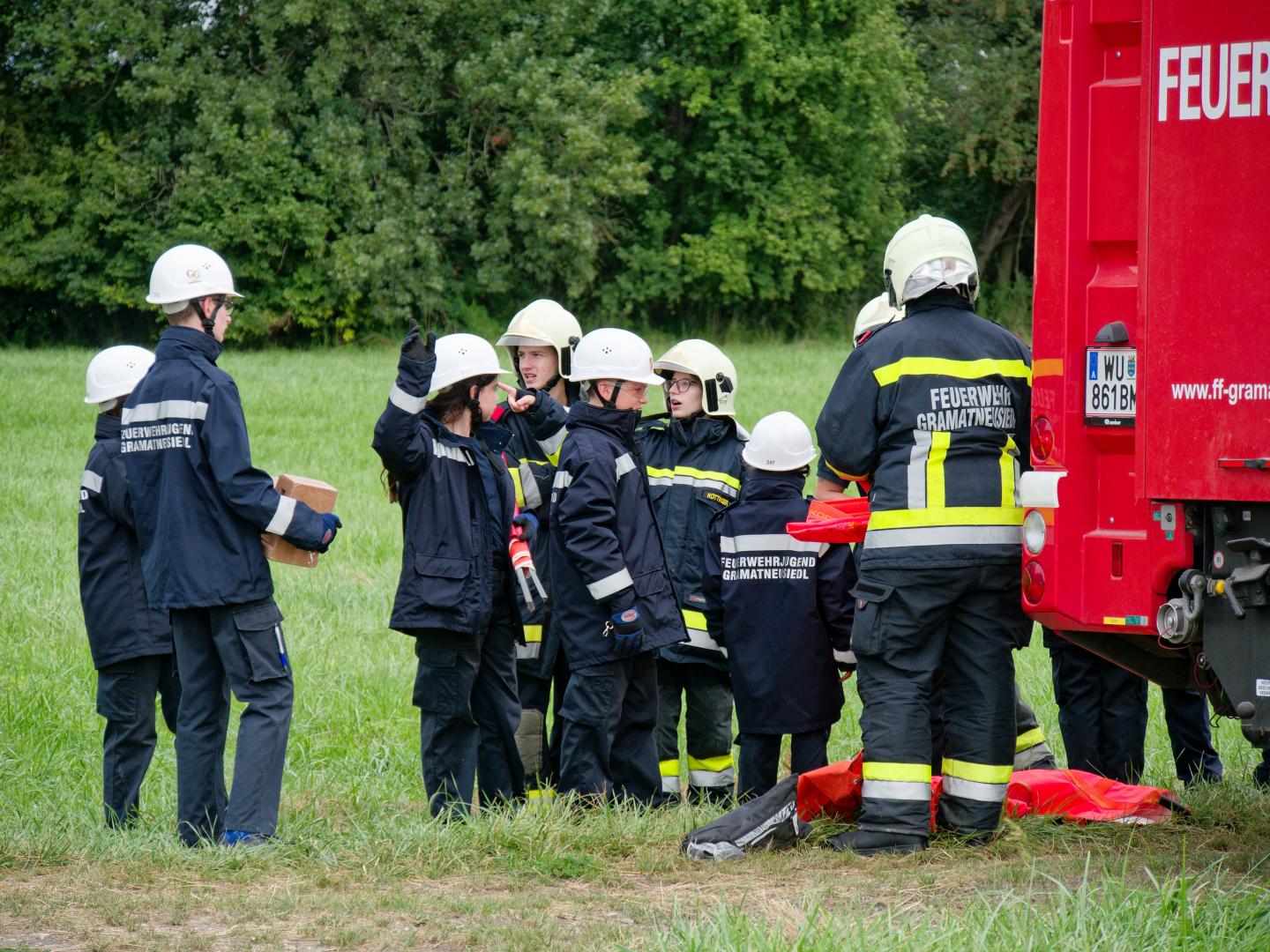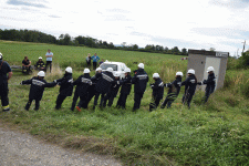 Von Freitag auf Samstag musste sich die Jugend den Aufgaben der "Großen" stellen und ihr Können und ihre Einsatzbereitschaft unter Beweis stellen. Nach dem Aufbau des Zeltlagers ging es gleich los mit einem festgefahrenen Auto. Mit Hilfe der Umlenkrolle konnte das Fahrzeug aus seiner misslichen Lage befreit werden und mit der Abschleppachse abtransportiert werden. Der Zweite Einsatz befasste sich mit einer Personensuche und -befreiung. Nachher durften sich die Mädels und Burschen dann noch auf dem neuen Freizeitpark austoben. Der dritte Einsatz war feurig.
