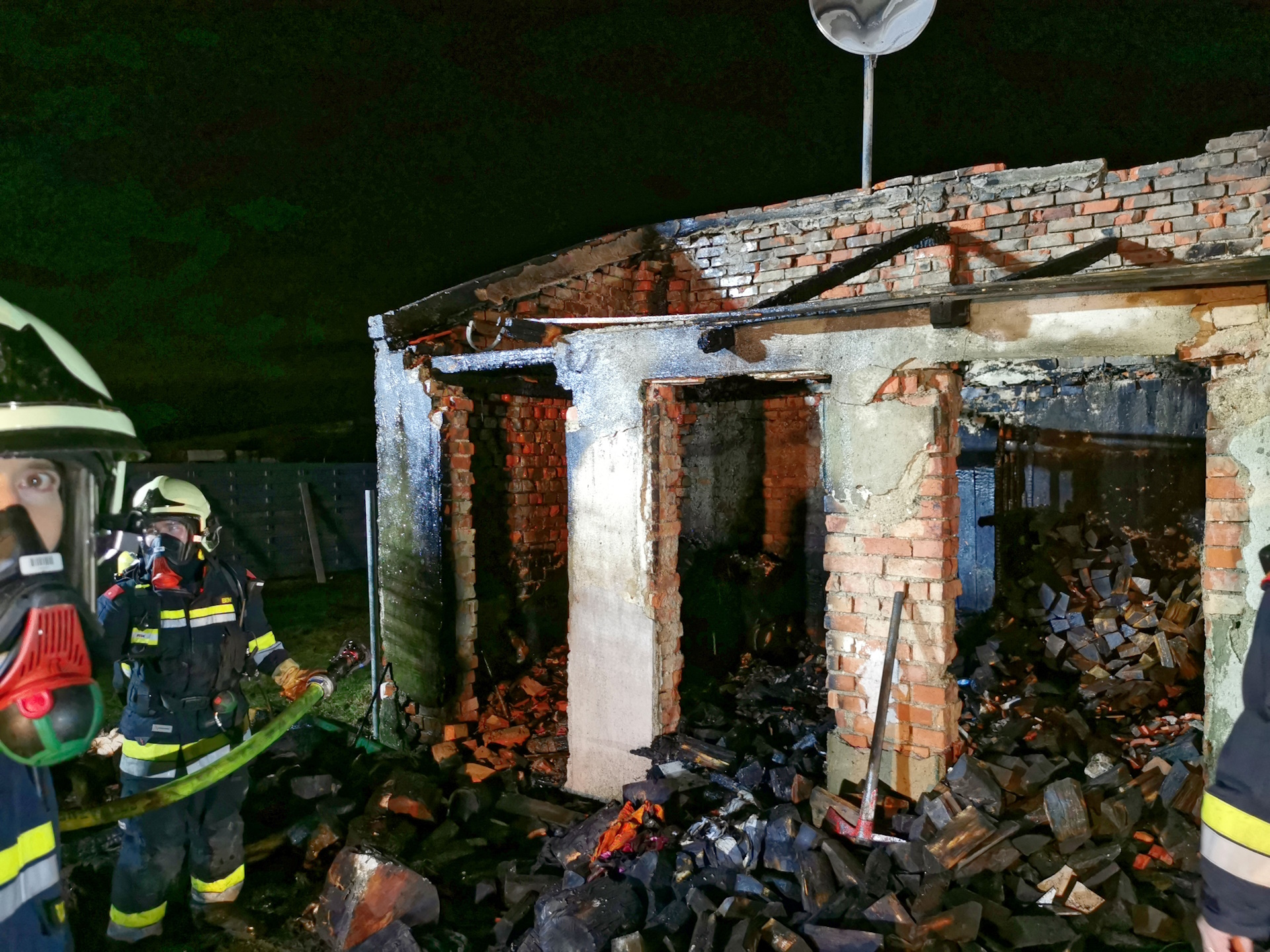Nach dem Brand Aus wurden noch Glutnester abgelöscht, die Umgebung nach möglichen Glutnestern durchsucht und die Brandursachenermittler der Polizei unterstützt.