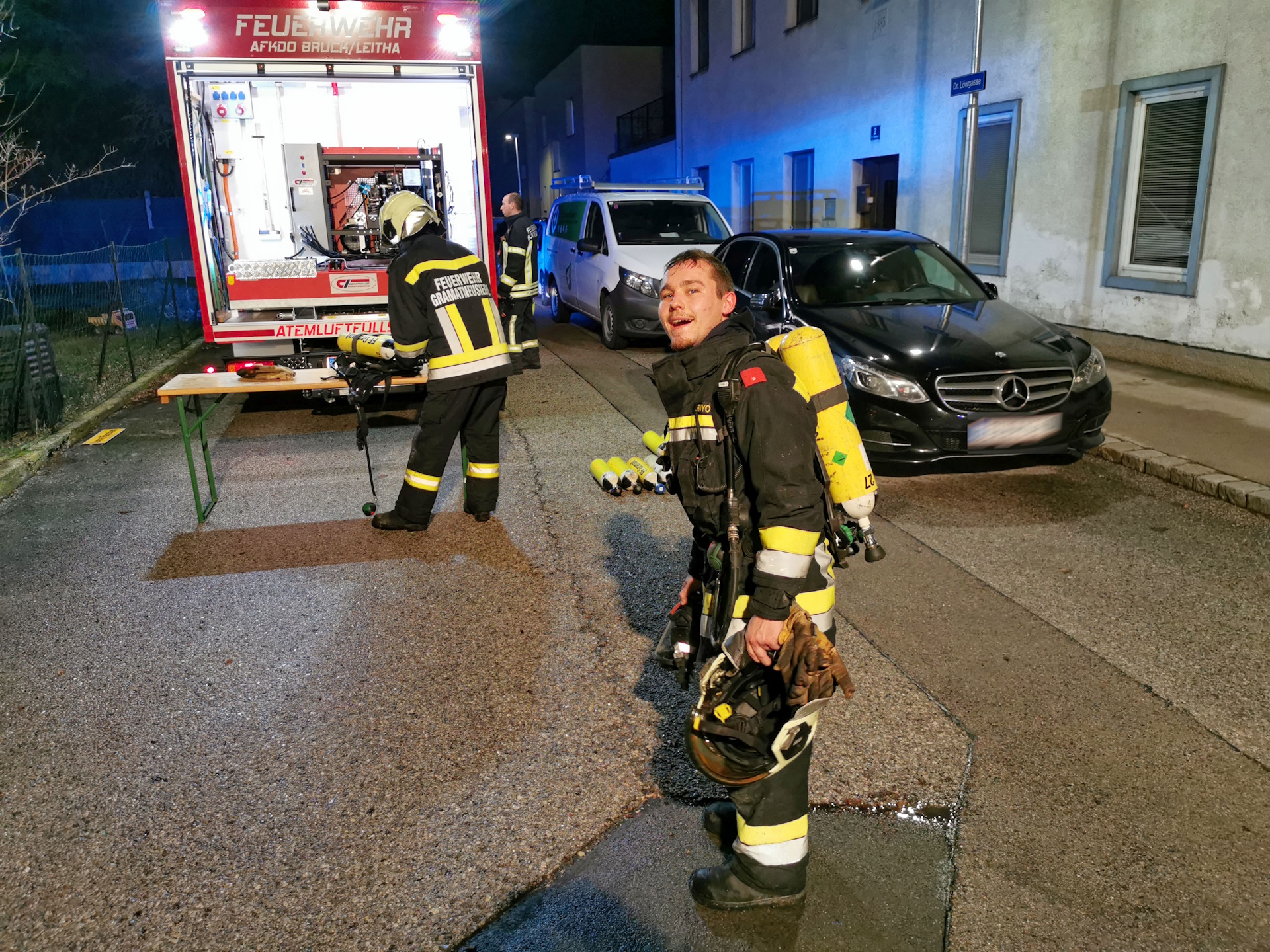 Um die Wiederbefüllung der Atemschutzgeräte kümmerte sich das Atemluftfahrzeug aus Pischelsdorf.