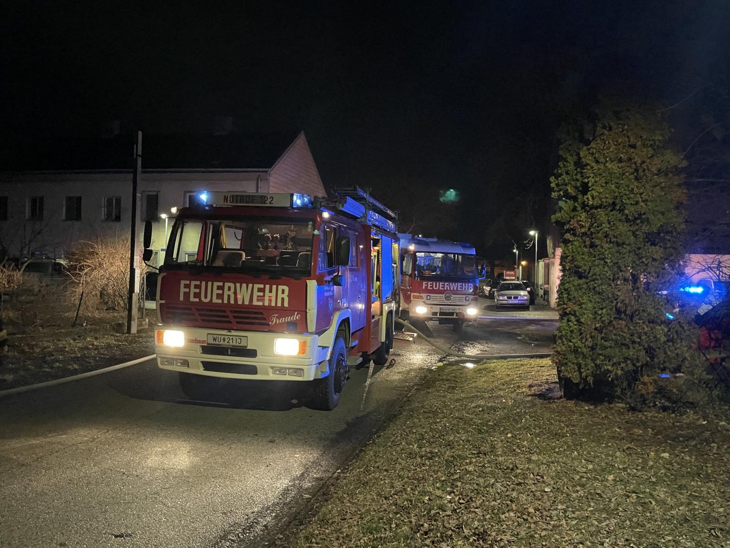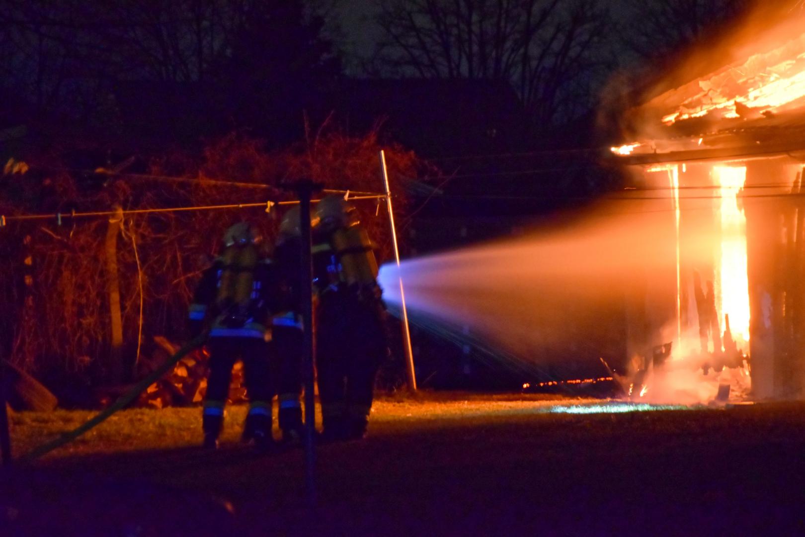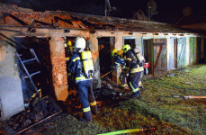 Am Mittwoch Abend wurden wir mit der Feuerwehr Moosbrunn zu einem Brandeinsatz im Ortsgebiet alarmiert. Eine Zeile Lagerhütten stand im Brand. Unser TLFA4000 startete sofort mit der Brandbekämpfung unter schwerem Atemschutz und wurde kurz darauf von den nachfolgenden Kräften unserer Feuerwehr und der Nachbarfeuerwehr aus Moosbrunn unterstützt. Der Löscheinsatz zeigte umgehend Wirkung und die Brandlast konnte gebrochen werden. Die Ausbreitung des Brandes auf die Lagerflächen des Heizöls konnte verhindert werden. Um den Brand endgültig abzulöschen musste ein Teil der Hütten ausgeräumt werden.