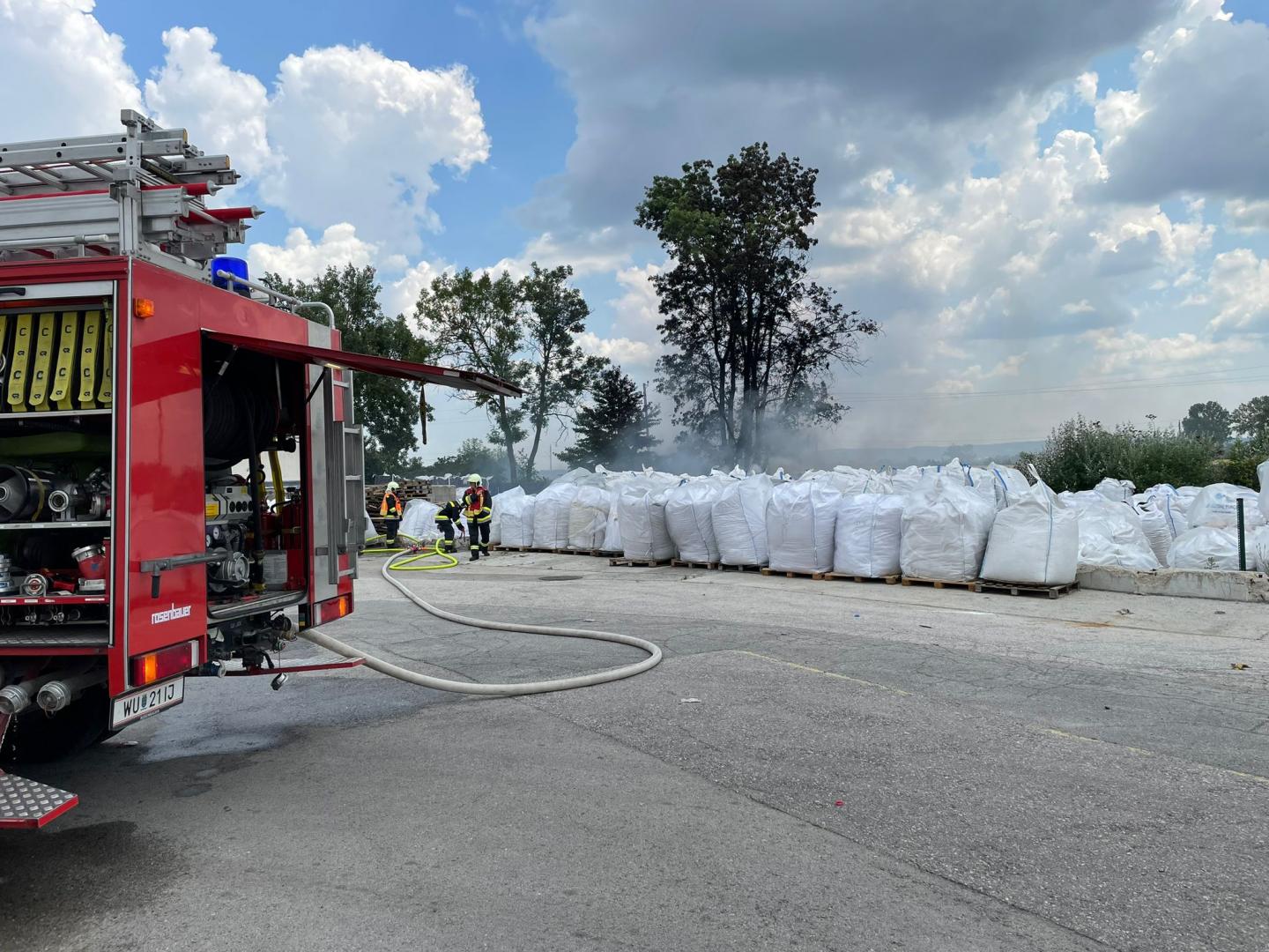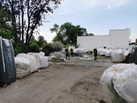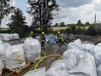 Unter schwerem Atemschutz wurde durch die Mannschaften von TLFA2000 und TLFA4000 die Brandbekämpfung vorgenommen. Die nachfolgenden Kräfte unseres Unterabschnitts stellten die Wasserversorgung für die Brandbekämpfung sicher und organisierten den Atemschutzsammelplatz. Die Brandbekämpfung zeigte schnell Wirkung, das endgültige Ablöschen gestaltete sich auf Grund der Verpackung des brennenden Materials in so genannte Big Packs schwieriger.