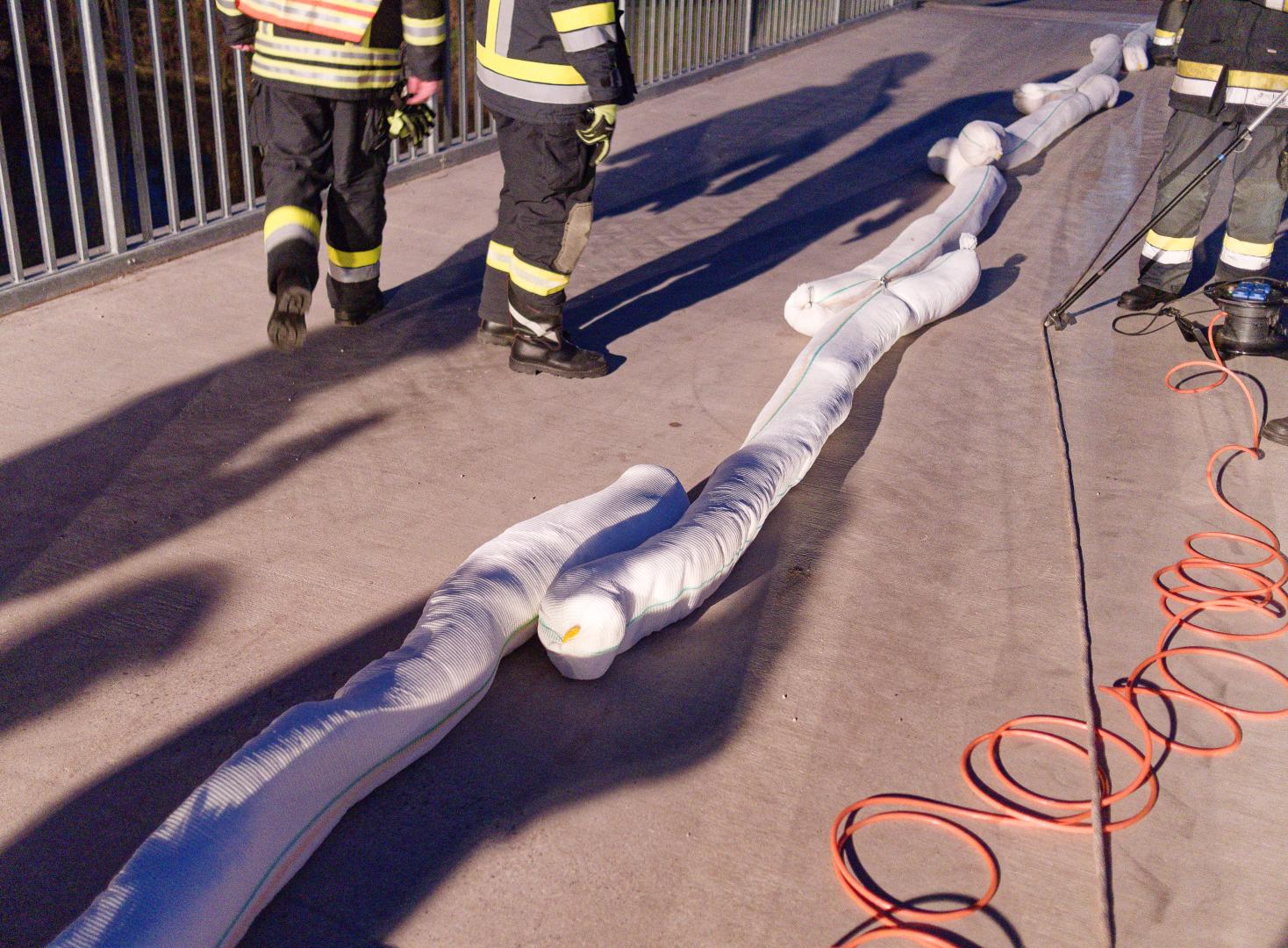 Vor Ort wurde von uns eine Ölsperre errichtet, um eine weitere Ausbreitung zu verhindern. |