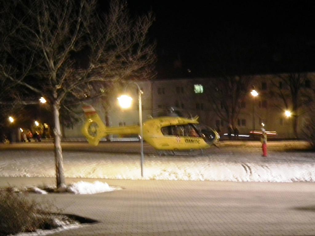 Aufgrund der Dämmerung forderte der Pilot eines Rettungshubschraubers die Feuerwehr an um den Landeplatz auszuleuchten.