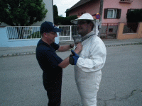 Zwei Kameraden beseitigten die Plage geschützt durch die entsprechende Schutzausrüstung. |